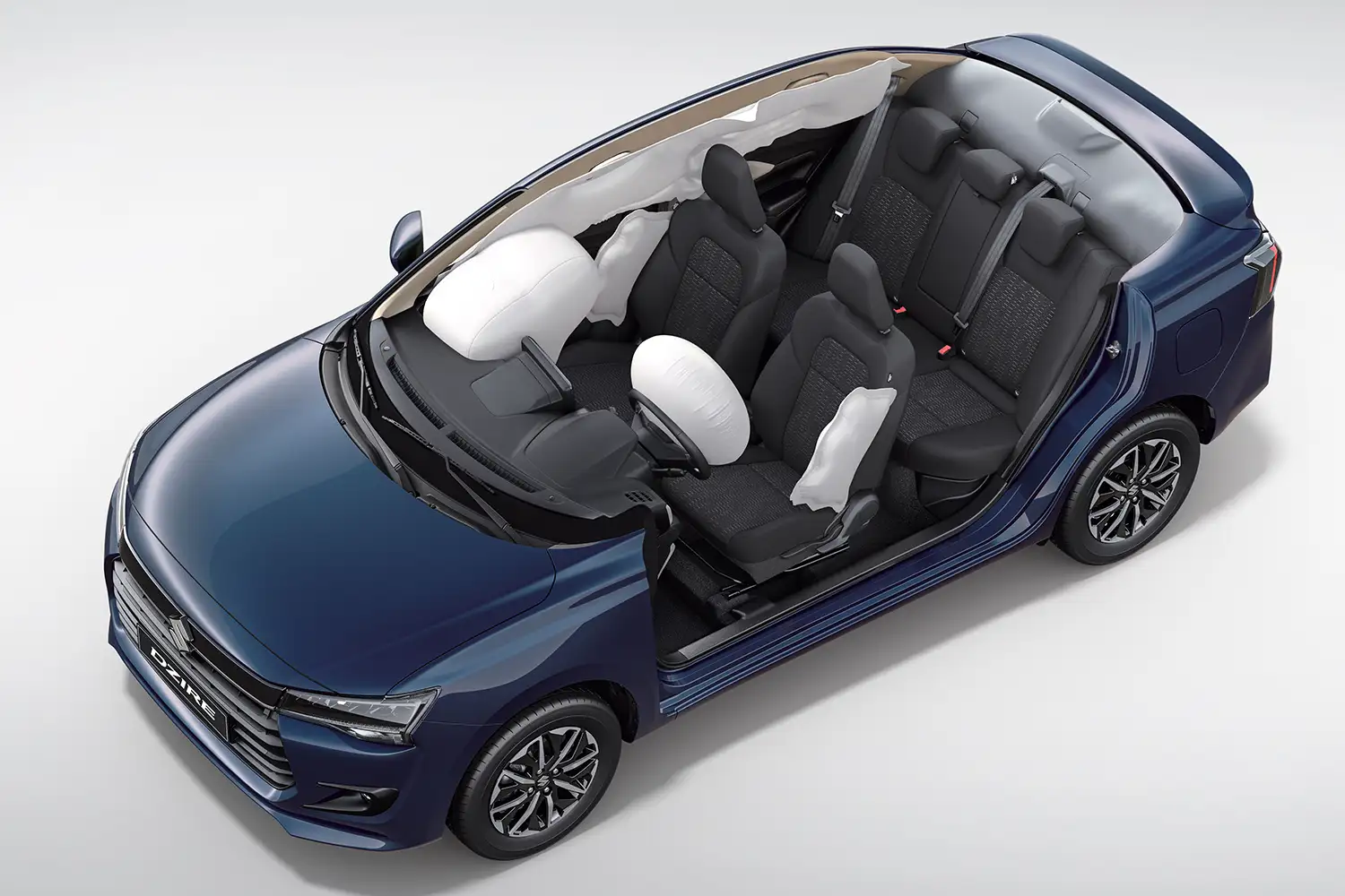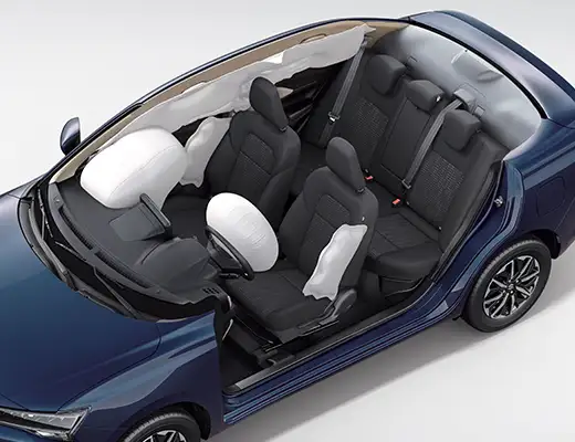 El nuevo Dzire viene equipado con bolsas de aire frontales y laterales para el conductor y el pasajero delantero. Además, cuenta con bolsas de aire tipo cortina para proteger a todos los ocupantes.