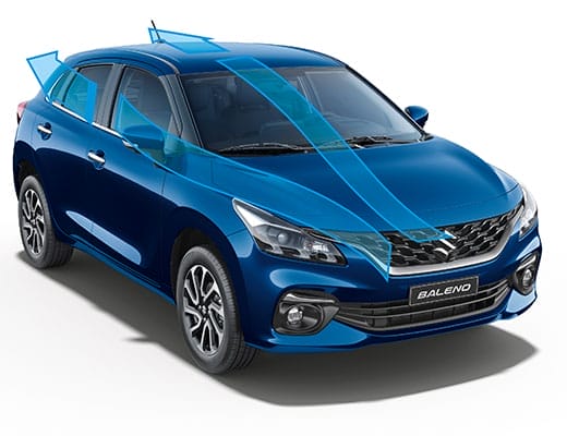 El rendimiento aerodinámico superior del Baleno, conseguido mediante el uso completo de pruebas CAE y de túnel de viento y la optimización de la forma de cada pieza, se traduce en una alta eficiencia de combustible y una conducción silenciosa.