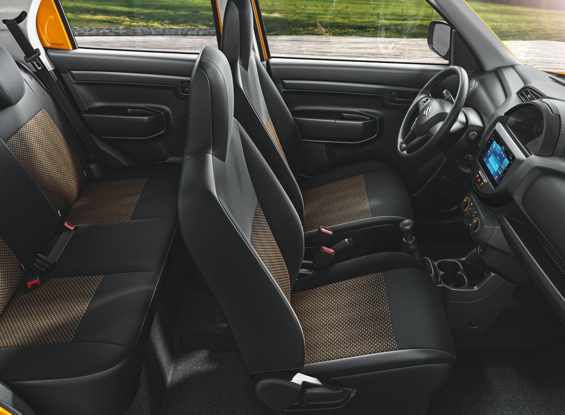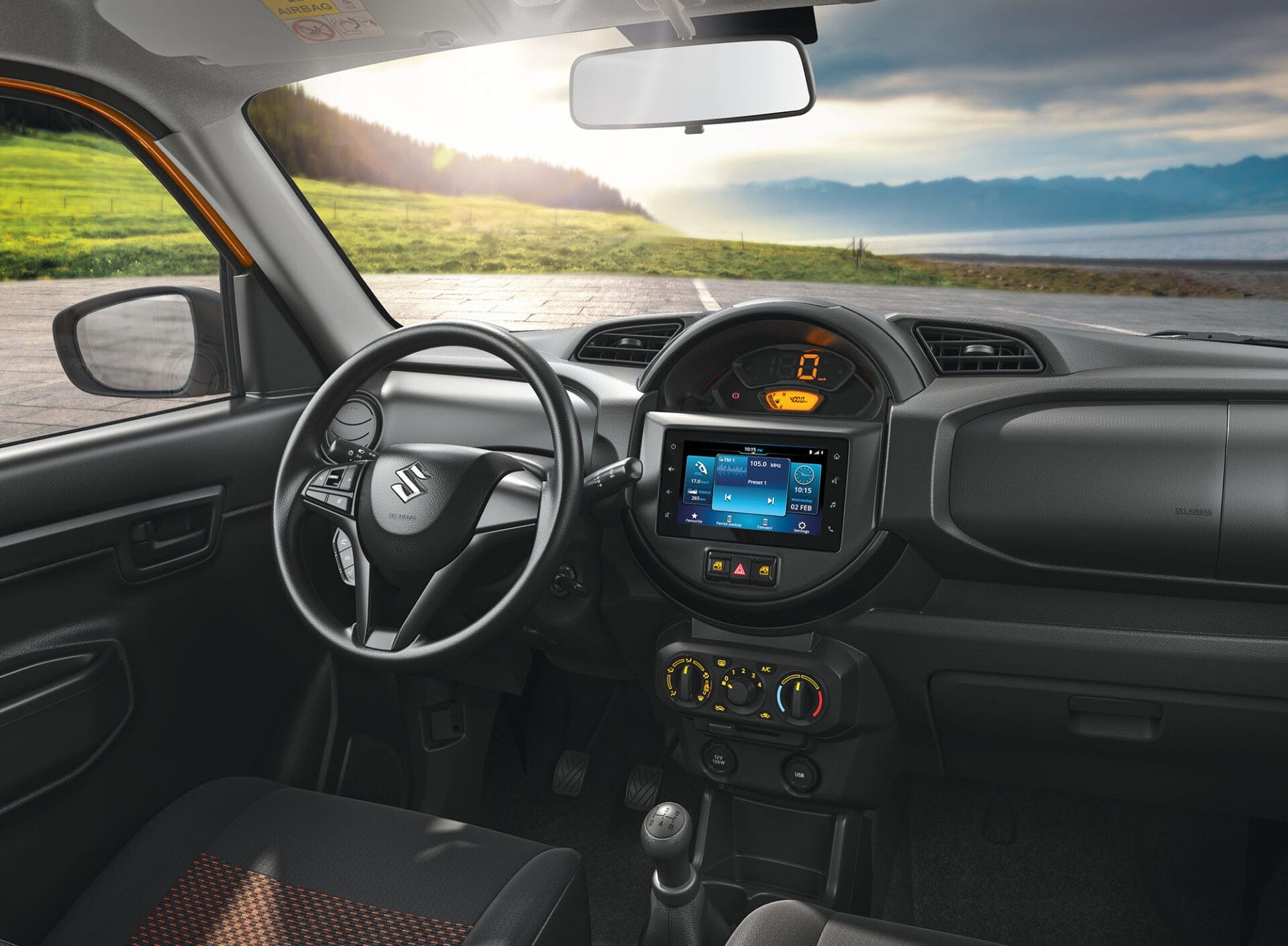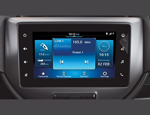 El S-PRESSO da vida a tu conducción con el audio de pantalla que cuenta con una pantalla de 7 pulgadas. Funciona con Apple CarPlayTM para tu iPhone, así como con el smartphone compatible con Android AutoTM.