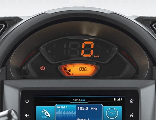 Su diseño vanguardista le confiere un aspecto futurista, al tiempo que garantiza una buena visibilidad del velocímetro, permitiéndole te permite mantener la concentración en la carretera. La nítida y sofisticada pantalla LED también te ofrece detalles importantes como el consumo de combustible, la velocidad media, el tiempo de conducción y mucho más.