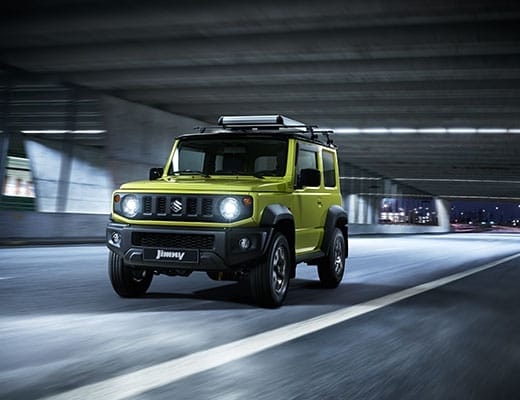 Enorgullécete de la herencia del Jimny, simbolizada por sus icónicas lámparas redondas. Arandelas son estándar para lámparas LED, permitiendo conducción cómoda en lodo, tierra o nieve.
