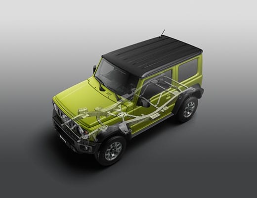Desde la primera generación, el Jimny siempre ha tenido un marco de escalera que ofrece una fundación sólida para un rendimiento serio todoterreno.