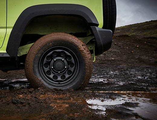 Nada menos que ejes rígidos de ancho completo tanto delante como detrás, que ayudan al Jimny a garantizar un agarre superior en diversas superficies.